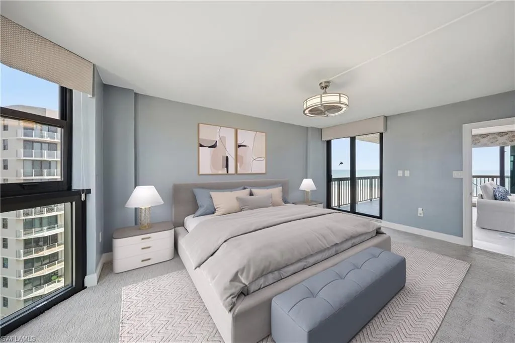 One or more photo(s) has been virtually staged, AI generated or rendered. Rare opportunity to own a spacious 3-bedroom, 3-bath beachfront residence at Princess Del Mar, offering southwest exposure and sweeping views of the Gulf waters, sandy beach, and Marco Island. Light-filled interiors with elegant light flooring create a bright coastal feel, opening to a private terrace perfect for enjoying sunsets, Gulf breezes, and panoramic shoreline views.